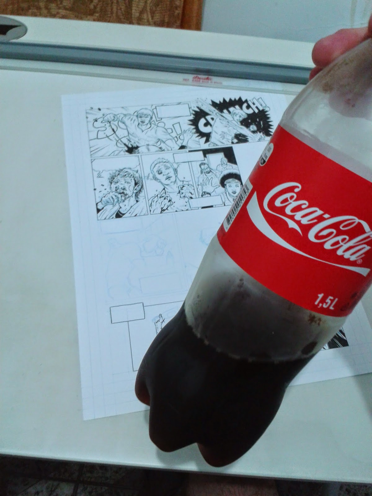 Os três autores viraram as últimas madrugadas para produzir novas e totalmente inéditas histórias pra você, que serão publicadas na quarta edição do EL FANZINE, que está saindo quentinha da gráfica. As imagens abaixo retratam o momento em que Abc e Tito Camello confraternizam pelo Whatsapp (aquele aplicativo que vale mais de 1 bilhão de dólares, mas que todo mundo só usa pra trocar fotos de sacanagem), mostrando as bebidas cafeinadas responsáveis por manter a produção das páginas a todo vapor!